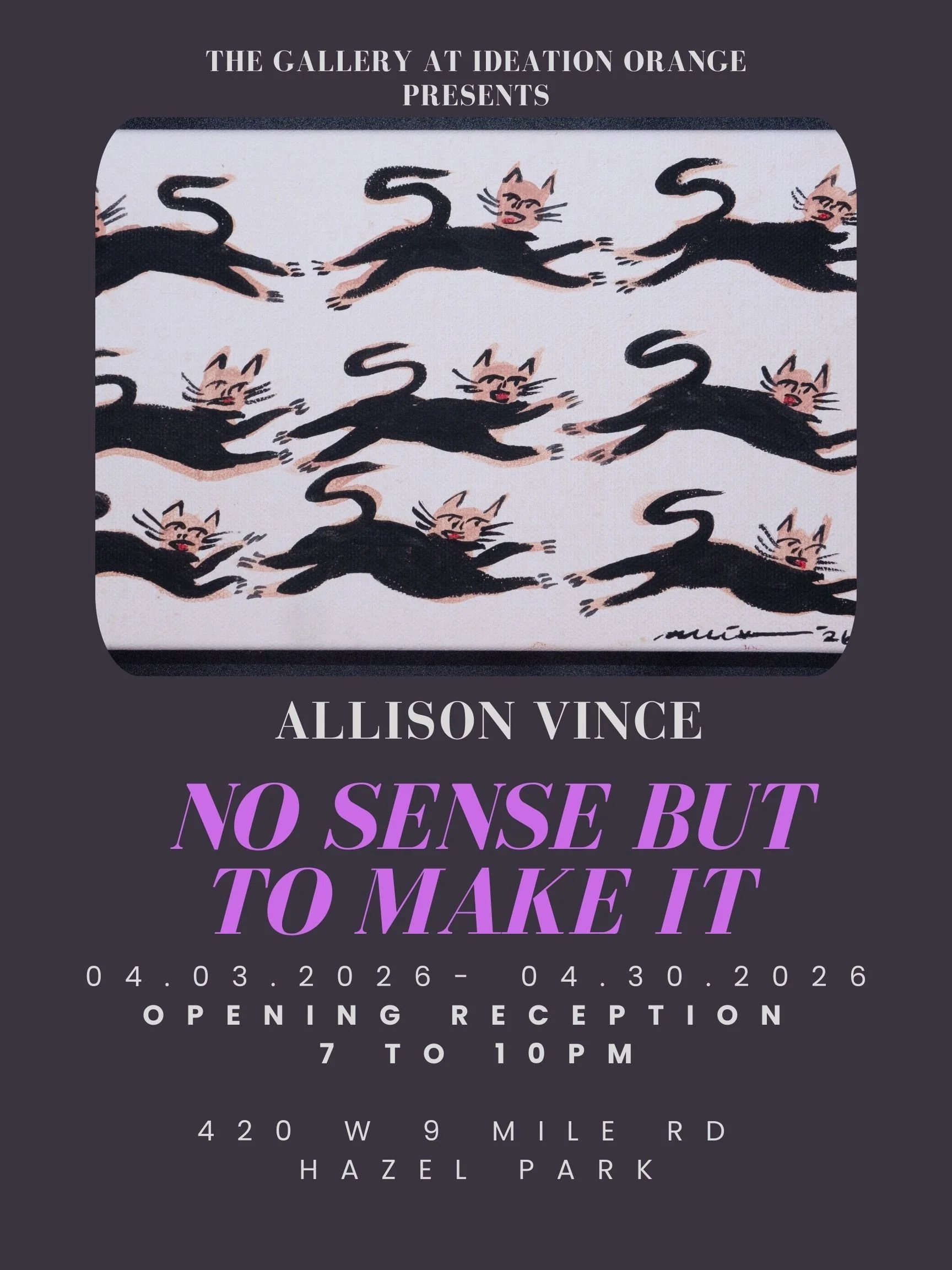 No Sense but to Make It is the second solo show from Detroit-based artist Allison Vince.